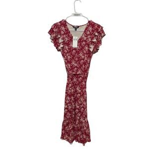 Brand new with tags ralph Lauren floral midi dress in a deep red with cream cherry blossom floral print. Size small. Features a flattering v-neckline, flutter sleeves, adjustable tie back waist, and a softly ruffled hem. Flowy and lightweight—perfect for wine tasting, garden parties, or European summer vacations.