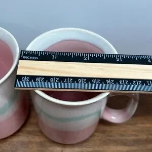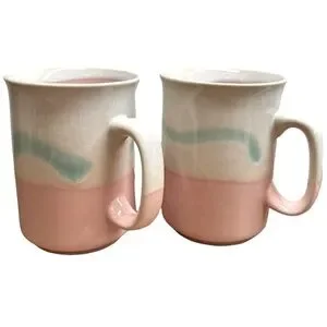 Bundle this Vintage 80’s Stoneware Mugs Set Of Two Pink Mint Green & Cream In Colour to save on shipping