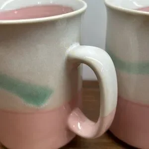 Vintage 80’s Stoneware Mugs Set Of Two Pink Mint Green & Cream In Colour Excellent condition no chips or cracks