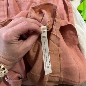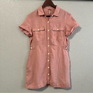 Free People Sydney Tunic Dress | Pink Cotton Linen Utility Mini Dress - Small