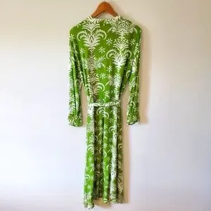 Worn once and dry cleaned. Excellent, like new condition. No flaws or stains. Zara Lilou belted green and white floral midi sundress. Button front with 3/4 length sleeves.