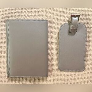 NWOT ROYCE New York Gray Leather Travel Set- Passport Holder & Luggage Tag