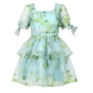 Jessakae Petal Dress XL Tiered Chiffon Floral Blue Green