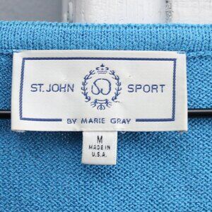 St. John Sport Light Blue V-Neck Embroidered Knit Sweater Top USA Size Medium