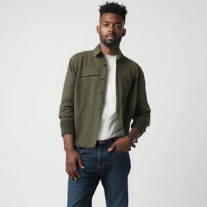 Experience the perfect blend of style and comfort with this lightweight shirt jacket from Simons. Crafted in a refreshing green hue, it's ideal for layering during transitional weather. Its versatile design makes it a must-have addition to your outerwear collection.
