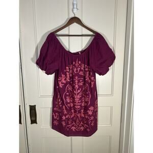 Free People Floral Embroidered Off Shoulder Fiona Shift Dress Womens Size Large