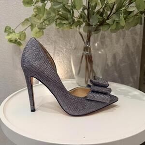 Betsey Johnson Prince D'Orsay Glitter Bow Stiletto Silver Women's 6 Excellent