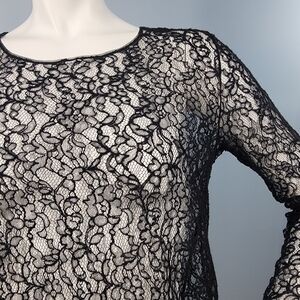 La Perla Wool Alpaca Floral regal Leavers Lace Long Sleeve Top Black size small