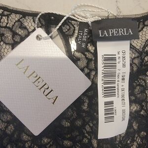 Experience refined Italian luxury with this exquisite La Perla wool–alpaca blend floral Leavers lace top. Crafted with La Perla’s couture-level attention to detail, this long-sleeve piece features delicate, semi-sheer lace with a beautifully feminine silhouette.