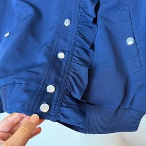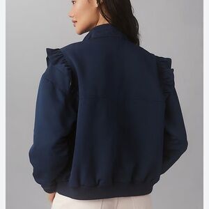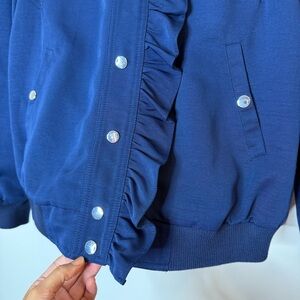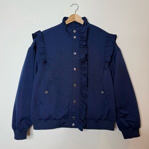 Maeve Anthropologie Ruffle Snap Front Funnel Neck Navy Blue Bomber Jacket small