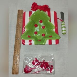 NWT Mud Pie Plastic Tree Dip Cup With Spreader And Crate & Barrel Santa Picks