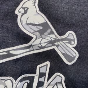 This medium, button-down jersey features a black and white theme with a camo pattern in the center logo. If you look closely, some fading can be seen in the linework of the cardinals themselves. Otherwise, in great condition!! (Some fabric paint may serve to fix this) No tears, stains, holes, or scuffs. ⚾️