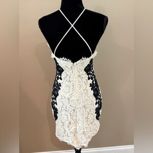 Women’s SAYLOR Alexis dress in black & cream lace. Size small. Excellent, gently loved condition. From Revolve. Little to no signs of wear. No stains or flaws noted. See all photos. Smoke free home. Fast shipping