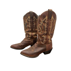 These are a pair of pre-owned women's Justin cowboy boots in size 7.5.