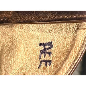 The leather upper also exhibits creasing and some scuffs consistent with use.