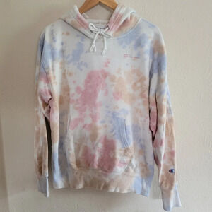 CHAMPION, Womens Pullover Hoodie, Pink, Blue &Orange Sun Wash, Size Small
