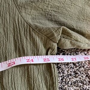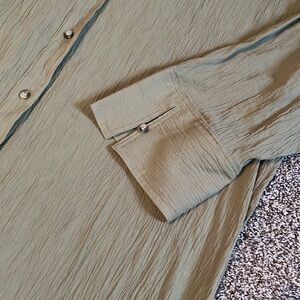 Excellent condition, olive green, side slits and button detail on sleeves. Works for the office or for fun.