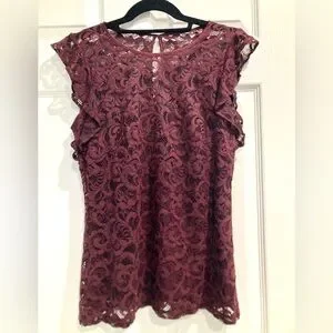 NWOT White House Black Market Flutter Sleeve Lace Shell Top Burgundy Wine Size 4