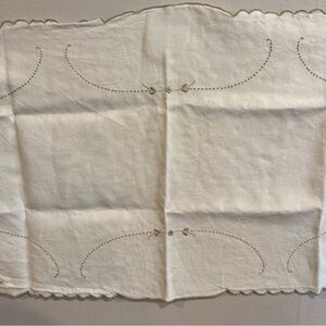 Vintage Off White & Tan Floral Design Table Runner 32.5” x 16.5” Scalloped Edge