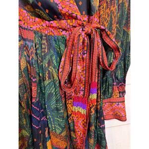 FARM RIO Dress Forest Tapestry Wrap Mini Bead Tassel Tie Print Medium $245 W173