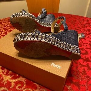 Christian Louboutin Navy Wedge Sandals