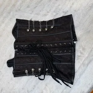 Adjustable Black Corset with Silver Chain Details