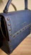 Michael Kors Dillon Studded Satchel in blue saffiano leather with silver-tone hardware. This stylish satchel features a structured silhouette with pyramid studs adorning the top flap.