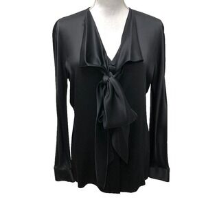 Christian Dior Silk Tie Neck Blouse Top Womens 12 Black Old Money Designer