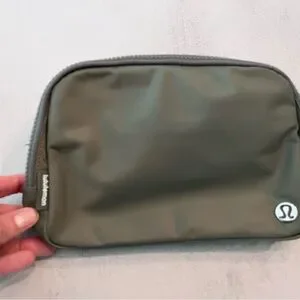 Sleek olive toiletry bag from Lululemon Athletica. Ideal for travel essentials.