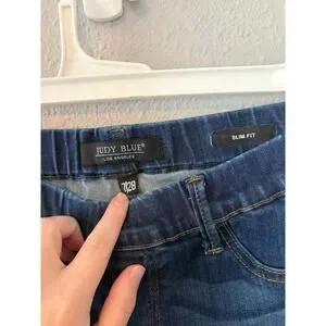 Judy Blue Slim Fit Dark Wash Stretch Waist Jeans size 7/28. 28in inseam. No buttons or zipper