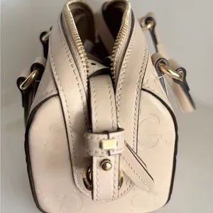 Authentic Gucci GG Super Mini Top Handle Bag in light beige GG-embossed leather. Only used twice; excellent condition with minimal signs of wear.