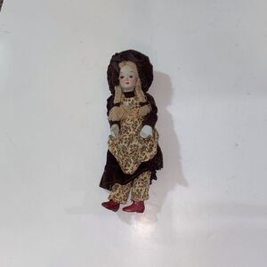 VTG,Russ Jessica Handmade Doll Ceramic Collectible with Brown Dress & Red Shoes