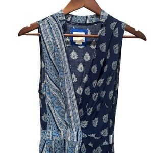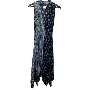 Anthropologie Maeve Eclipsed Midi Dress Stripe Paisley Mixed Print Blue Size 4