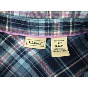 L.L.Bean Mens Plaid Long-Sleeve Button-Up Shirt L Regular Blue/Purple 100% Cotto