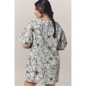 Dhruv Kapoor Short-Sleeve Denim Mini Dress M Shift Floral Coquette Mod Wedding