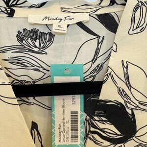 NWT Monday Fun XL "Jessie Curved Hemline Blouse" Stitch Fix Ivory Black Floral