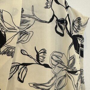 Monday Fun “Jesse” Curved Hemline Blouse in size XL, new with tags from Stitch Fix. Features an ivory background with an abstract black floral print, a split V-neckline, cap sleeves, and an easy curved hem that drapes beautifully over jeans, trousers, or skirts. Lightweight, machine-washable polyester makes this a perfect work-to-weekend piece for warm weather or layering under cardigans and jackets. Approximate measurements: 22 in. armpit to armpit; 26.5 in. length. Please ask all questions prior to purchase.