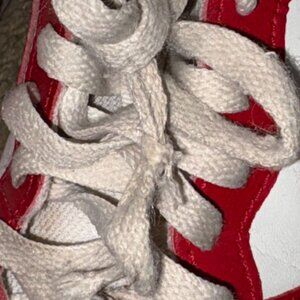 Condition: Good used condition. Smoke free home. No cracking or tears. There is some creasing on the top of the shoe. The laces are not as white as they were when purchased and one has a flawed end and a knot in it. One white scuff on the back of one of the shoes