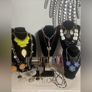The Fashion assorted jewelry lot #581 is a mixed lot of fashion jewelry specifically designed for women. The lot includes a variety of pieces such as earrings, necklaces, and bracelets, all in a multicolor palette. Made from mixed materials, these accessories cater to different fashion preferences and occasions, making them a versatile addition to any jewelry collection. Ideal for those looking to add a pop of color and style to their outfits, this lot offers a selection of pieces that can be worn together or individually for a customized look.