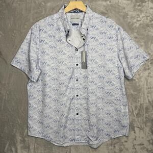 Henri James Shirt Mens XL Short White Blue Abstract Print Hyper Stretch Casual