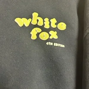 Cozy navy white fox hoodie with front logo. Soft fabric. Perfect for casual wear.