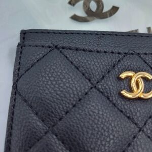 CHANEL 2022–2023 Vegan Leather Quilted Black Card Holder Gold CC 🎁 + NIP GIFT