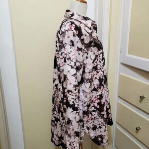 Floral Button Down Blouse / Monochrome / Black & Pink / Size Large