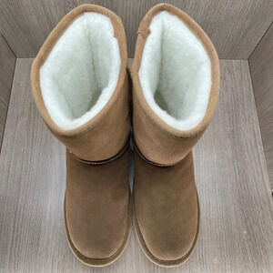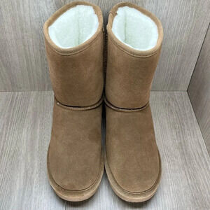 BEARPAW Boots Unisex Sz 9/10 Pull On Shearling Fleece-Lined Winter Suede Brown