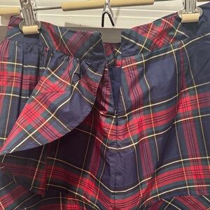 Chic skirt with asymmetrical ruffle detail. Festive plaid pattern can be dressed up or down for any holiday outing! Worn once!