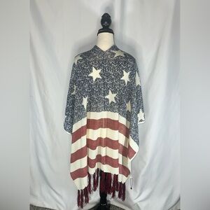 Patriotic America Poncho Wrap Scarf USA Stars Stripes NWT United States July 4th