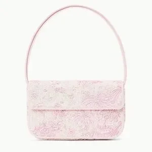 "Back in a cherry blossom pink update, the best-selling Tommy Bag is a hand-beaded shoulder bag with vegan leather piping. This style features a single flap closure, inner zip pouch and magnetic pocket on the back.