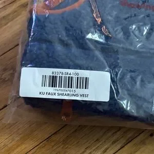 Keep your child cozy and stylish with this blue and brown faux shearling vest. Perfect for layering, this vest adds warmth and flair to any outfit.