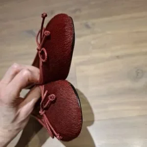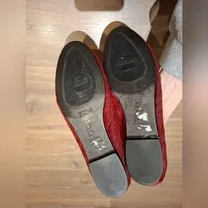 These are an absolutely stunning pair of genuine leather calf hair ballet flats in a deep burgundy; classic shoe with a contemporary twist; super soft/pliable leather; cushioned insole; like new condition - these are gorgeous, and in such a fun colour
