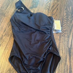 NWT MICHAEL Michael Kors Embellished One-Shoulder Underwire One-Piece Swimsuit